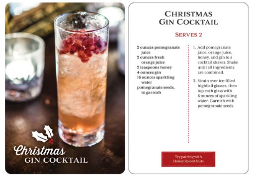 The Art of Mixology Making Spirits Bright Sips & Snacks, a beautifully designed recipe card deck that features 50 festive food and drink recipes. Cheers to making your spirits bright this Christmas season with these delicious cocktail recipes, which include cozy oldies like Eggnog and Mulled Wine, but also new classics like Jingle Juice and Cinnamon Basil Mojitos.Did someone ask for a mocktail? No problem! Recipes are easily converted to nonalcoholic choices. This deck also features festive food and snack pairings, like a Charcuterie Wreath and Jingle Popcorn Mix.