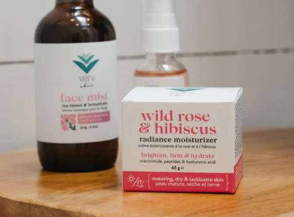 Wild Rose & Hibiscus Radiance Moisturizer: Bring back your glow with Wild Rose & Hibiscus Radiance Moisturizer, a revitalizing daily cream that deeply hydrates, brightens, and restores radiance to dry, dull, and maturing skin.