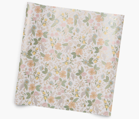 Dress up presents and projects with this pretty wrapping paper, which features eight feet of paper with colourful illustrations, gold foil accents, and gridlines on the back.