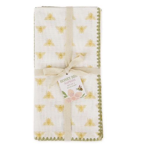 Dress up your place settings with these little bee cloth napkins. Set of 4.